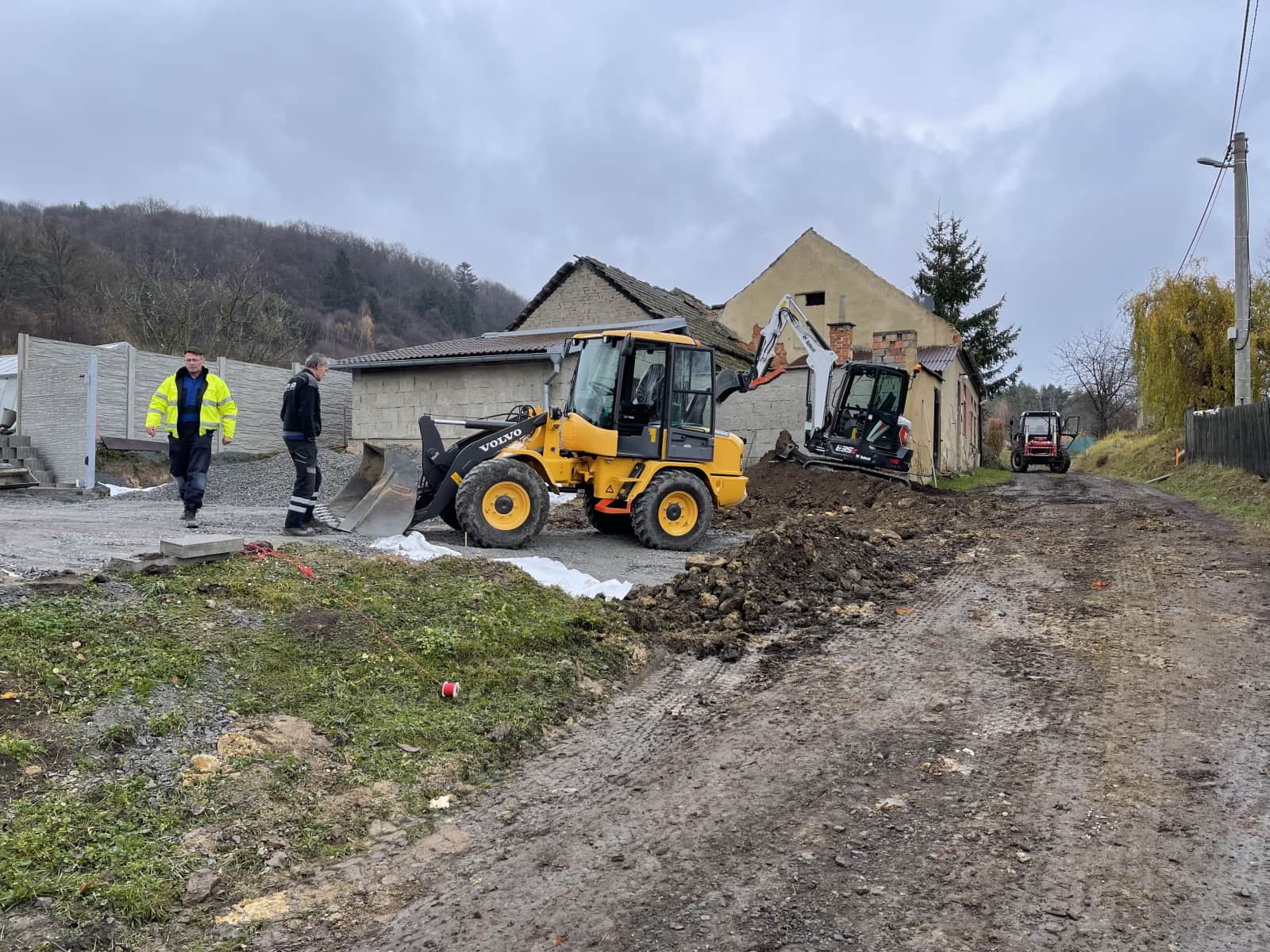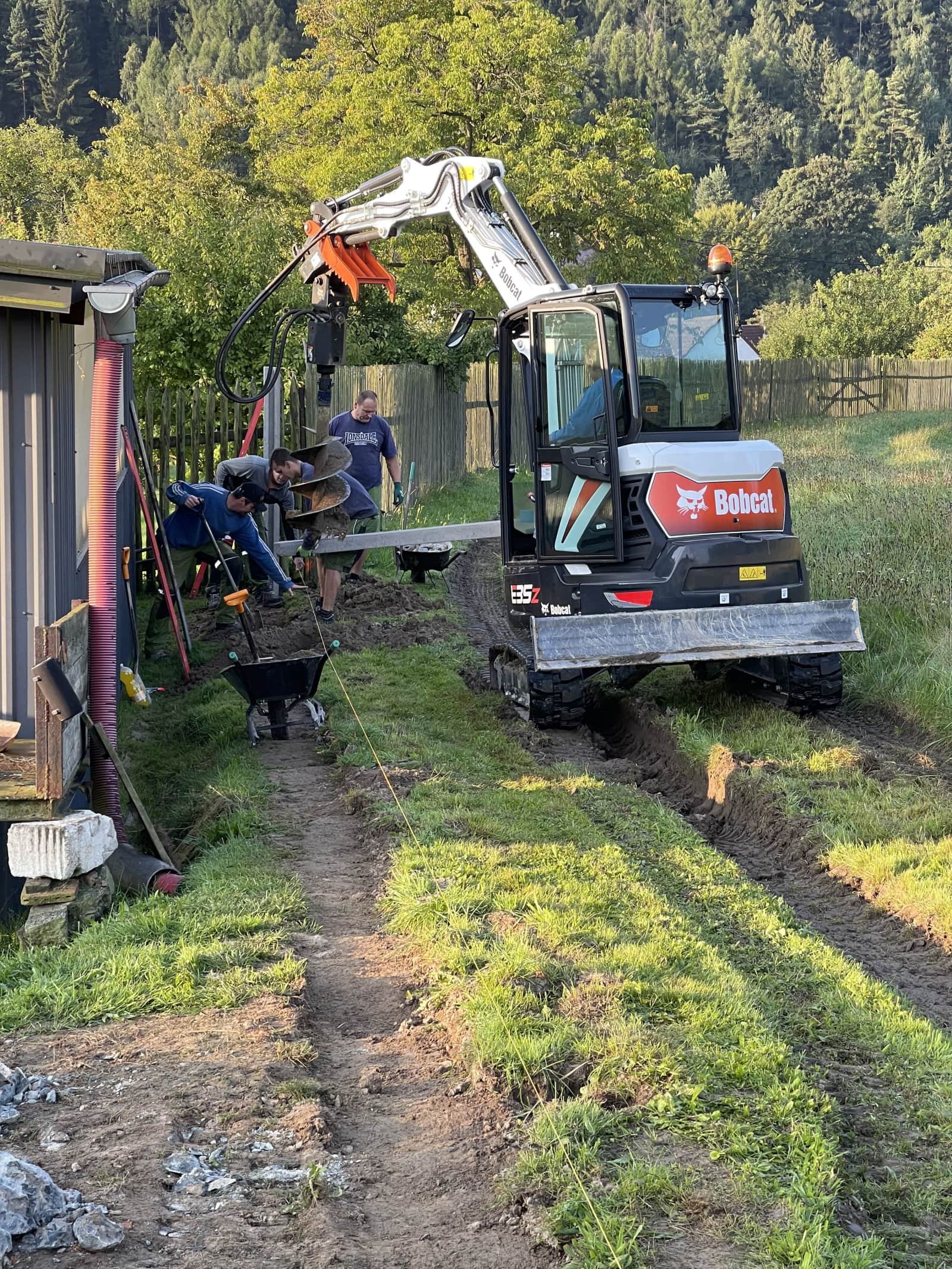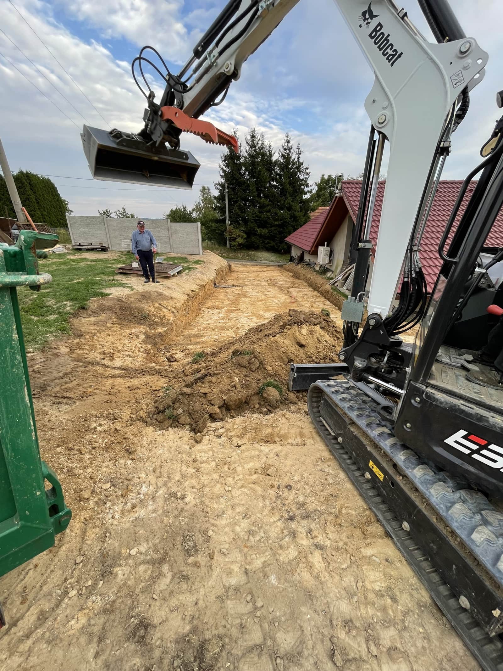 Při práci na nové budově našich kanceláří byla nutná i účast minibagru. Výkopové práce s technikou od pana Alexy posloužily skvěle.
